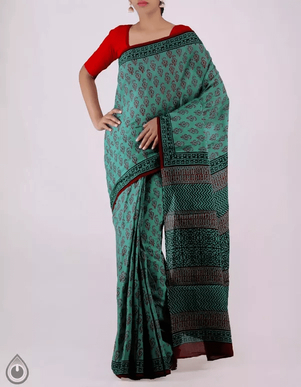 A sari or saree (sometimes also shari) is a women's garment from the indian subcontinent that consists of an unstitched drape varying from 4.5 to 9 yards (4.1 to 8.2 metres) in length and 600 to 1,200 millimetres (24 to 47 inches) in breadth that is typically wrapped around the waist, with one end draped over the shoulder, partly baring the midriff.